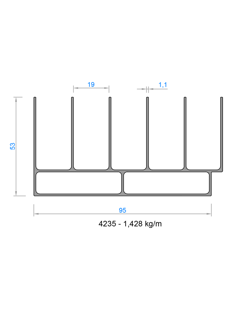4235 | Üst Kasa Profili 5'li | 1,428 kg/mt | 6500 mm | |