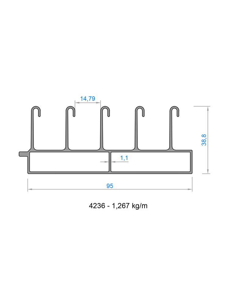 4236 | Eşikli Alt Kasa 5'li | 1,267 kg/mt | 6500 mm | |