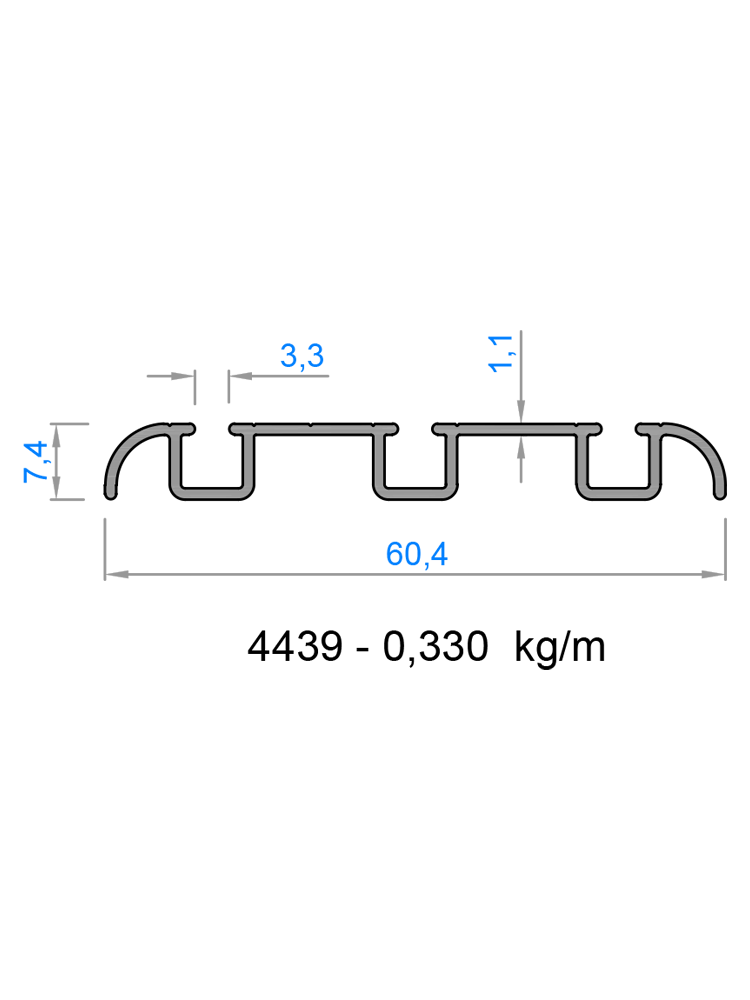 4439 | Eşiksiz Alt Kasa 3'lü | 0,330 kg/mt | 6500 mm | |